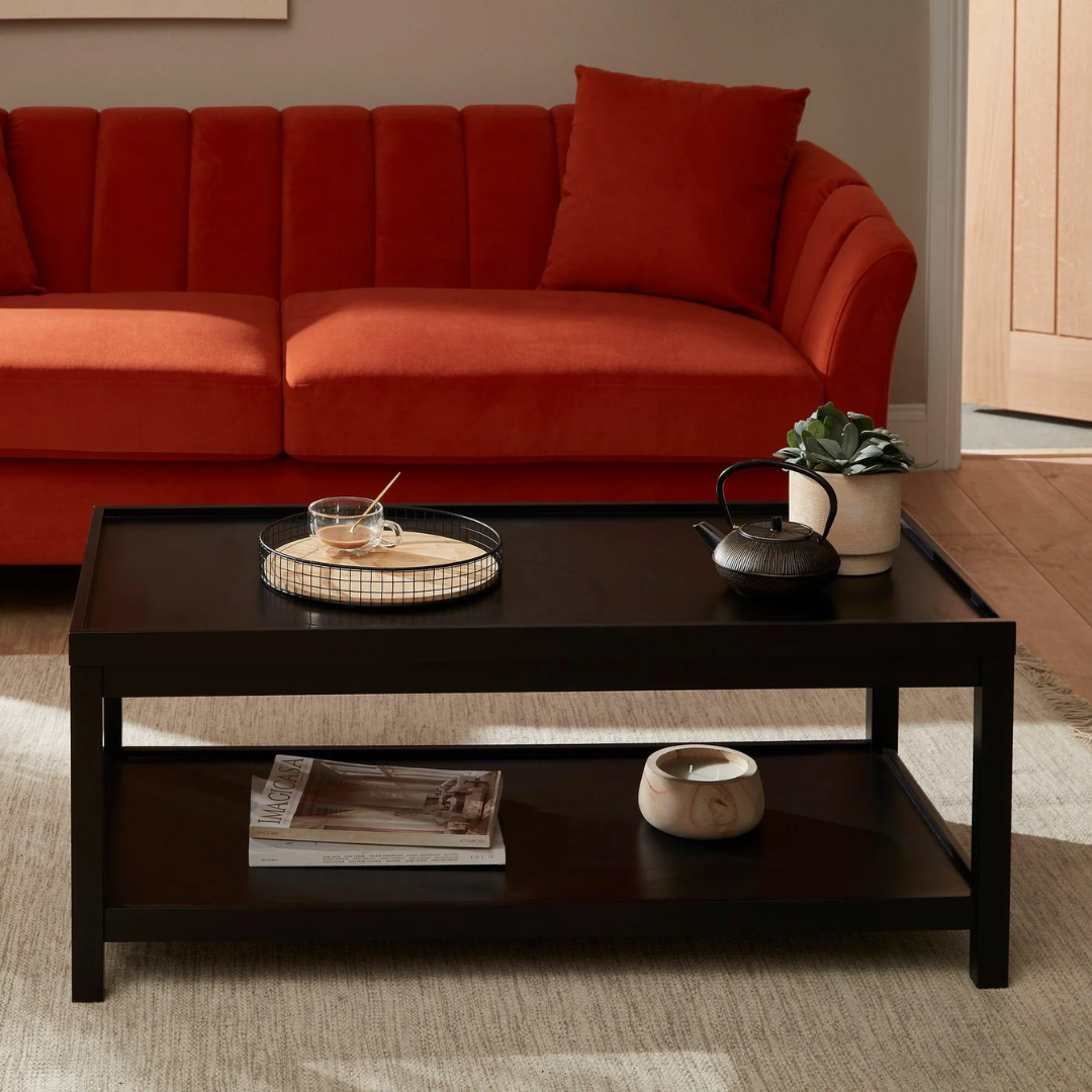 The Black Rectangular Luxury Modern Coffee Table is a bold and versatile centrepiece, combining a sleek black finish with a practical lower shelf for added storage. Its clean Rectangular design makes it perfect for both contemporary and luxury-inspired interiors. The wide top surface is ideal for serving, décor, or books, while the solid frame ensures durability and stability. Designed to complement a variety of sofa styles, it’s the perfect blend of style and function for modern living rooms.