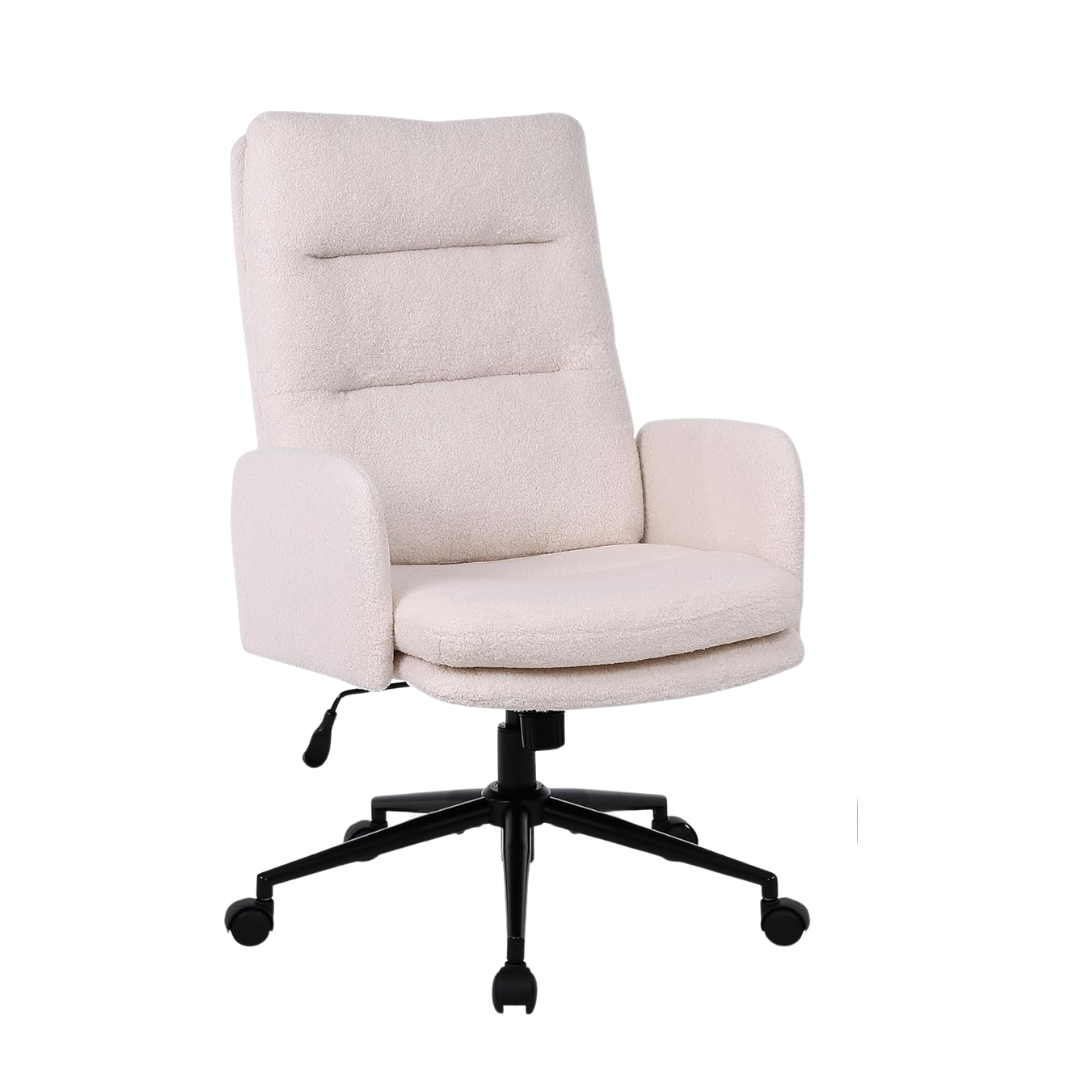 Looks like a cloud, works like a dream. This Boucle cream office chairs With Wheels blends plush comfort with a smooth-rolling design that supports all-day productivity. From Zoom calls to late-night edits, its padded frame and curved armrests keep you supported without compromising style.
