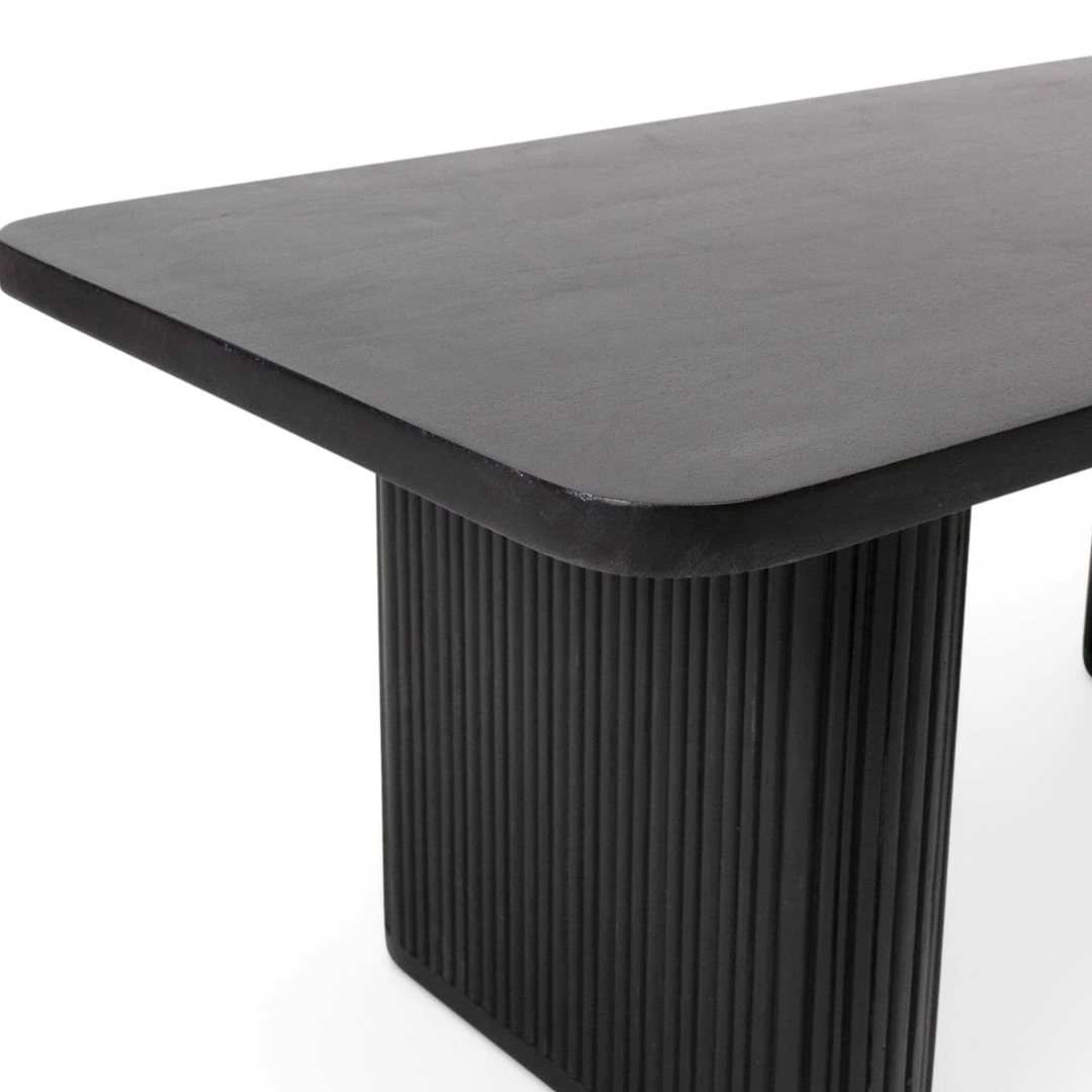 Design Features – Matte black finish, ribbed panel legs, rectangular long shape, modern minimalist style