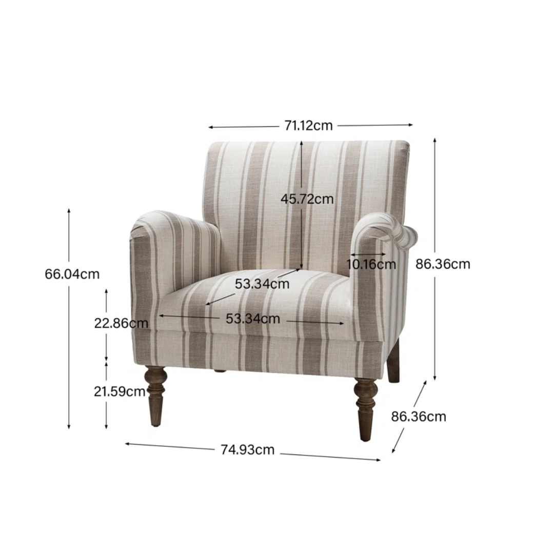 An easy win for any space that needs texture and tone. The Linen Grey Striped Armchair features a soft neutral palette with vertical woven stripes and a gently rolled silhouette for a timeless look that feels updated.