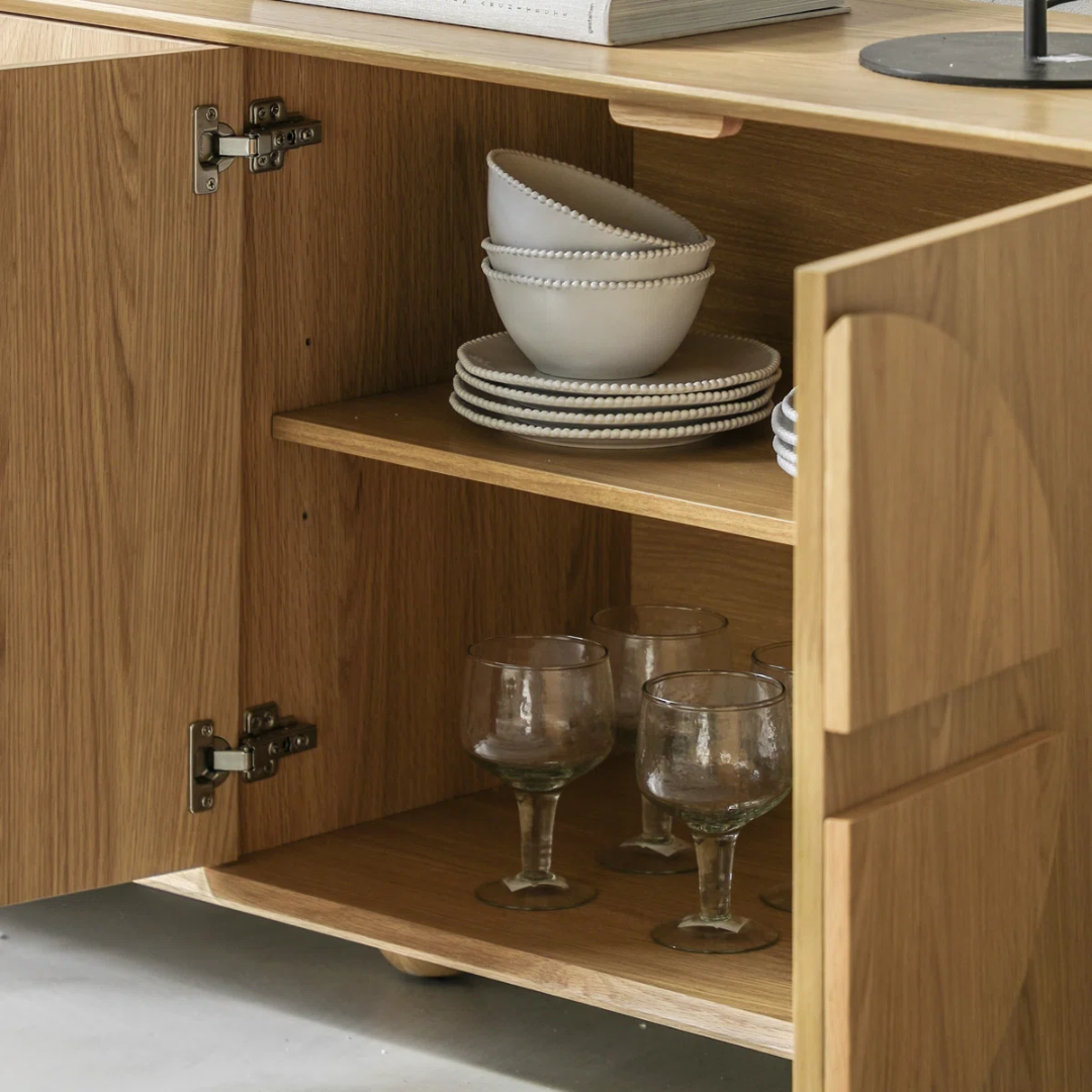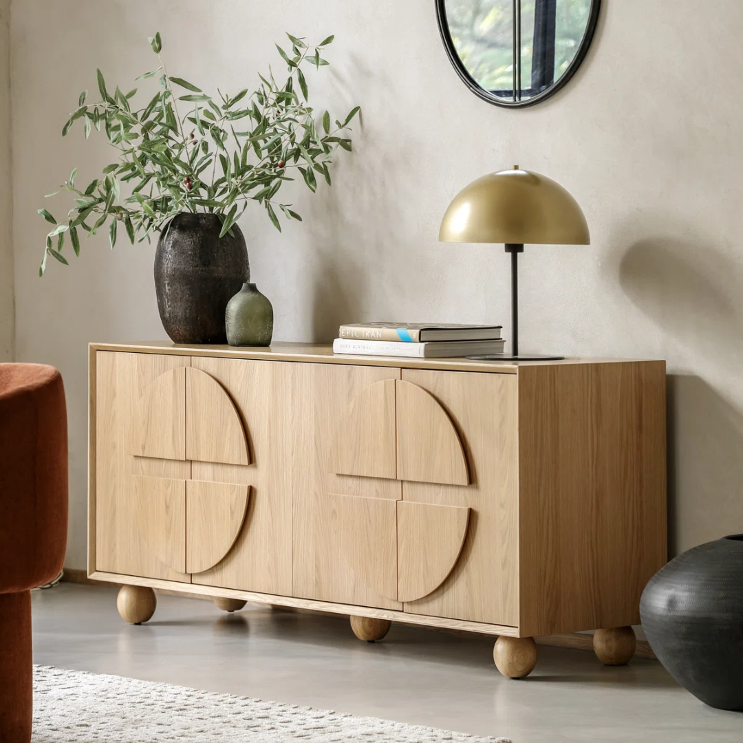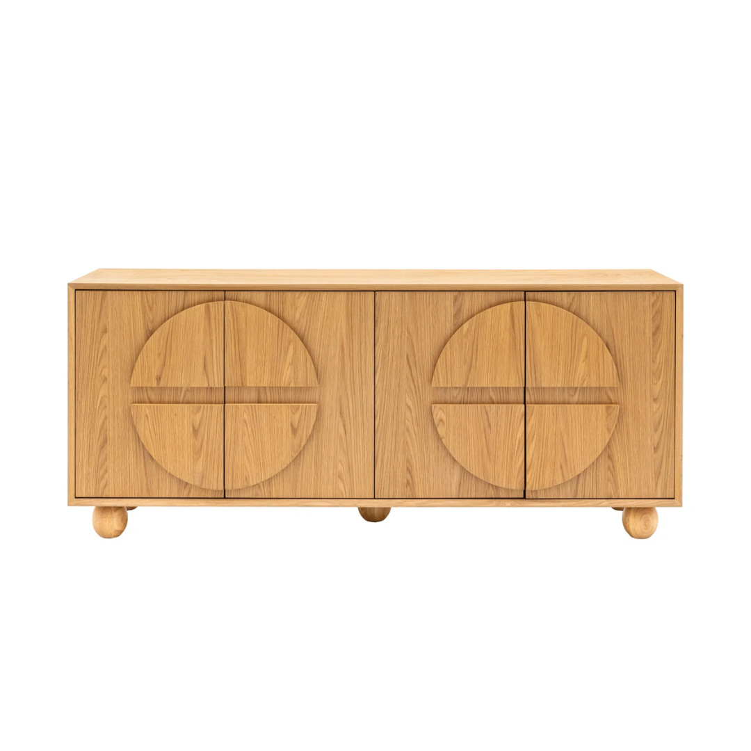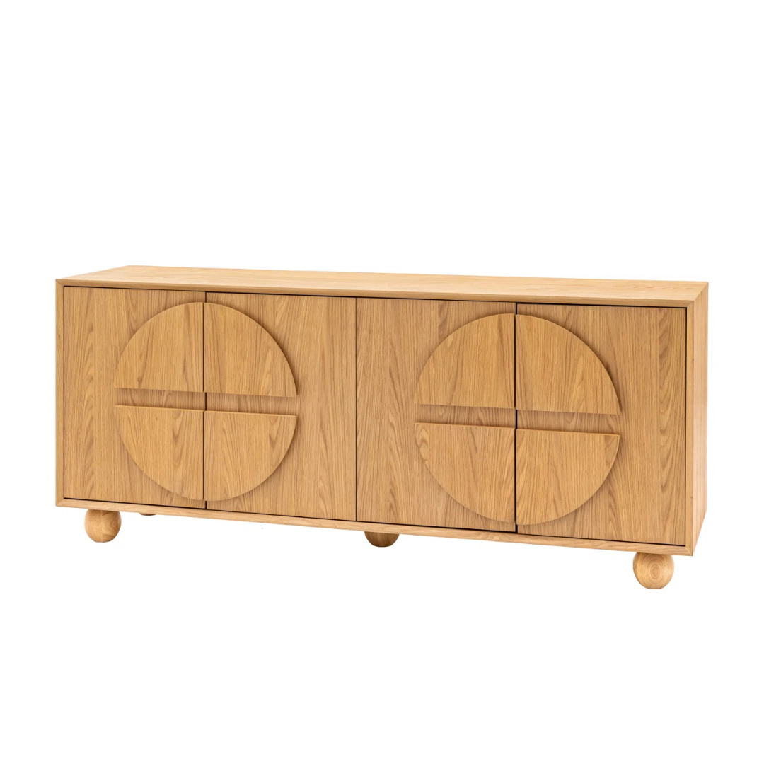 Bring style and storage together with the Mid Century Modern Teak Sideboard. Crafted from solid teak with a natural finish, this sideboard showcases bold circular front panels set on rounded ball feet for a distinctive retro-inspired look. Inside, adjustable shelving offers flexible storage, making it perfect for tableware, books, or living room essentials. Designed to complement mid-century and modern interiors, this piece combines high-quality craftsmanship with timeless appeal. Add it to your dining or living space for an instant upgrade that’s built to last.