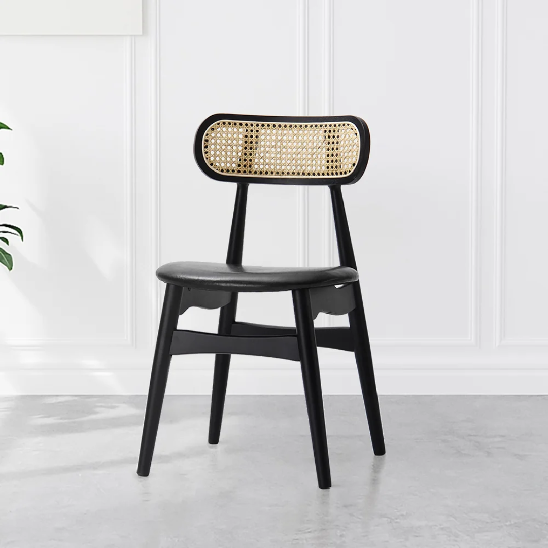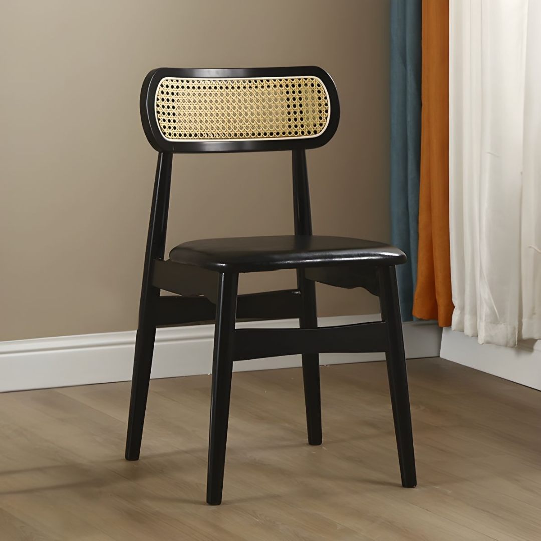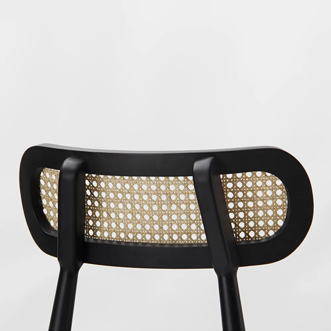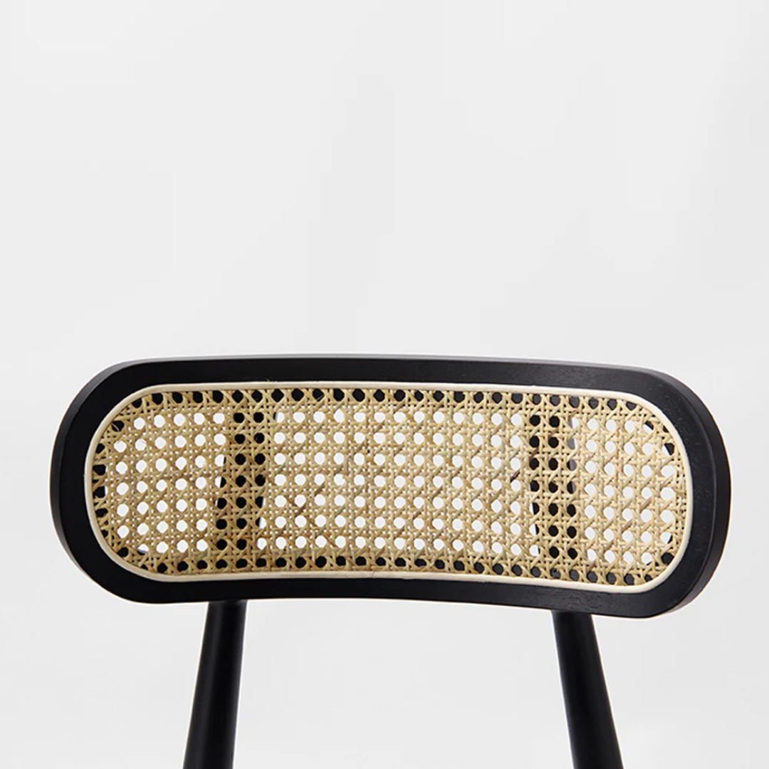 The black finish adds boldness, while the rattan backrest softens the look for a versatile pairing that works across both modern and traditional interiors. With padded seats for added comfort, this set is ideal for daily use around the table or as accent seating.