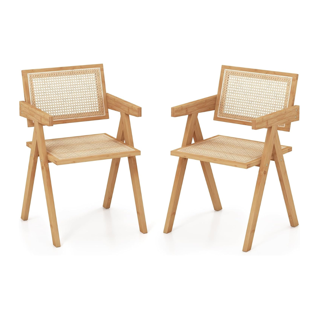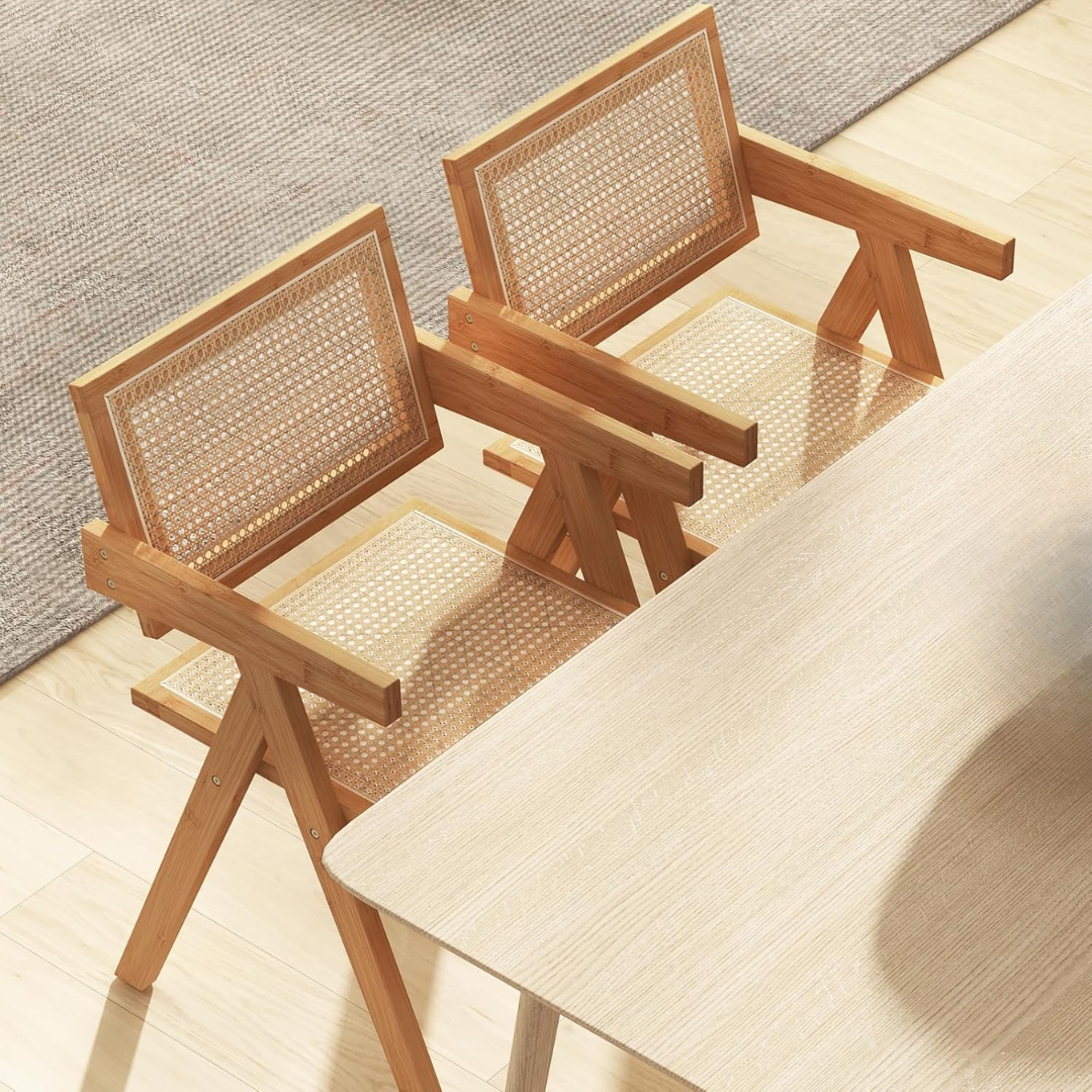 Solid Wood Rattan Dining Table Chairs - Set Of Two